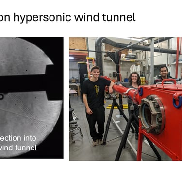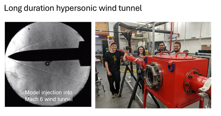 Hassan High Speed Wind Tunnel Lab: High-speed aerodynamics and propulsion research spanning subsonic through hypersonic speed range. Examples include shock train dynamics in high-efficiency engine inlets, aeroelasticity, and metasurfaces for aerodynamic applications.