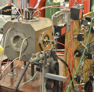 Turbulent Shear Flow Lab: Home to the solid fuel ramjet test rig and a wide range of combustion diagnostic facilities, this lab helps support combustion modeling through benchmarking datasets at ramjet operation conditions and probes the details of turbulence/chemistry interactions in solid fuel and multiphase combustion.
