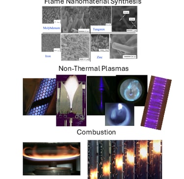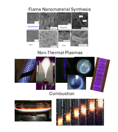Flame Nanomaterial Synthesis; Combustion in Heterogeneous Media; Excess Enthalpy Flames, Oxy-fuel Combustion; Energy systems; Non-thermal Plasmas for Pollution Control and Fuel Reforming